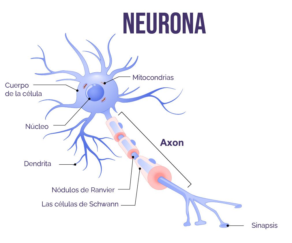 El cerebro tiene unas células pequeñas llamadas neuronas, muy importantes para el funcionamiento de nuestro sistema nervioso, ellas son las mensajeras de nuestro cuerpo, son las que ayudan a reconocer la información en el cerebro para luego enviar la respuesta al cuerpo; se estima que debe haber alrededor de cien mil millones de neuronas en nuestro sistema nervioso; estas transmiten señales a otras neuronas a través de impulsos eléctricos llamados sinapsis.