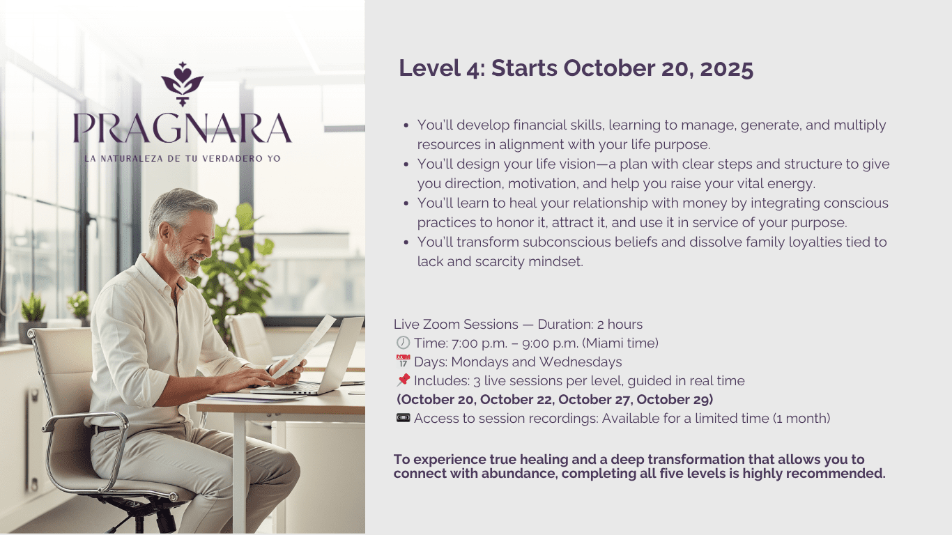 Discover Pragnara, an innovative method of self-discovery that helps you organize your mind, manage your emotions, strengthen your finances, and transform unconscious blocks.